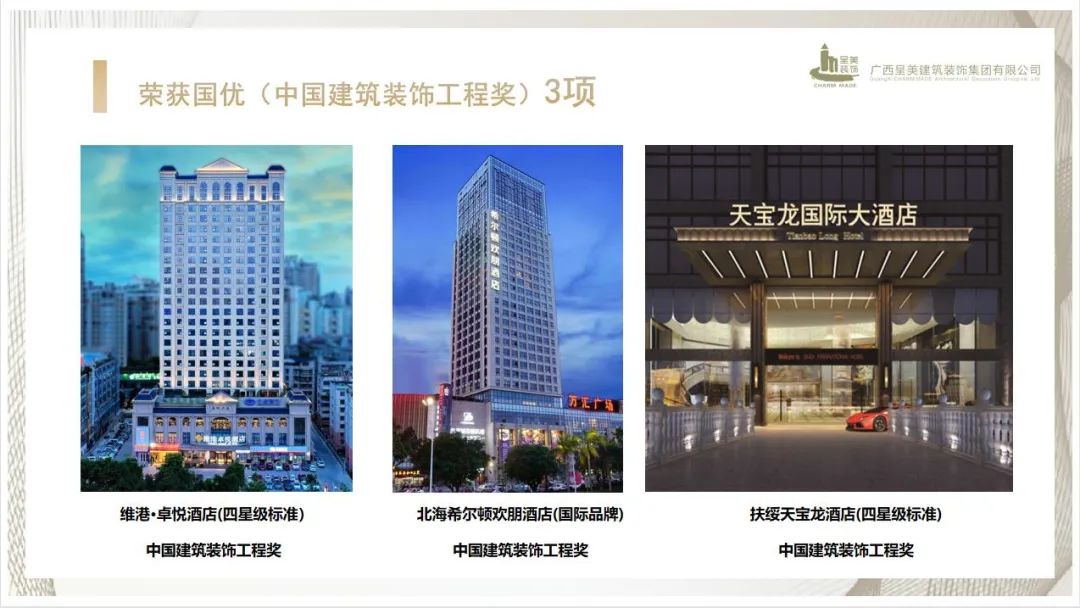 呈美建筑装饰集团在广西酒店装????? ??????????????????? ???????????????????? ???????????????????? ??????????????饰装修行业中傲立前端,其中3个酒店装饰装修????? ???????????????????? ???????????????????? ???????????????????? ???????????????项目荣获中国建筑装饰工程奖、6个酒店装饰装????? ??????????????????? ???????????????????? ???????????????????? ???????????????修项目荣获广西建筑装饰工程奖。